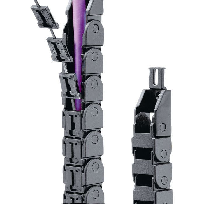 雖然傳統塑料拖鏈在鏈板與上蓋板之間以及鏈板與下蓋板之間分別增設上連接件和下連接件來增強鏈節的結構強度,拆卸方便,但該結構存在以下幾個缺點: