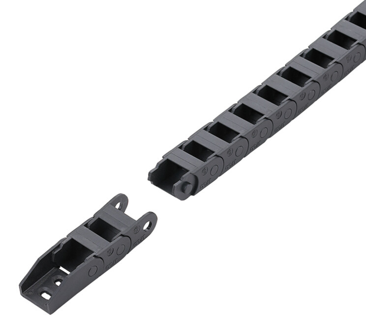 2、塑料尼龍拖鏈的結構預設保障了每一節都能自由敞開,安裝和調整維修便捷,認為合適而使用動態結構,因為這個塑料尼龍拖鏈運行中萌生的噪音很低,材質較軟,在與設施器件接觸后有美好的連署,耐磨性好。