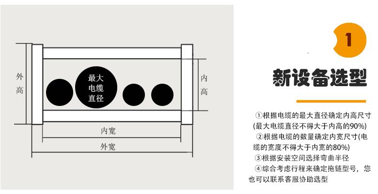 1.根據(jù)電纜的最大直徑確定內(nèi)高尺寸(最大電纜直徑不得大于內(nèi)高的90%)。