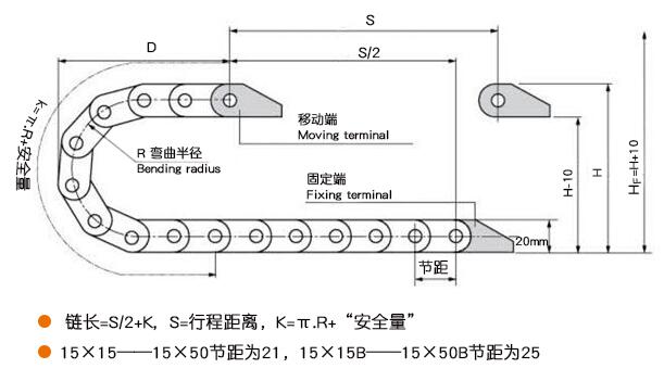 | 15系列塑料拖鏈規(guī)格表 | |||||
