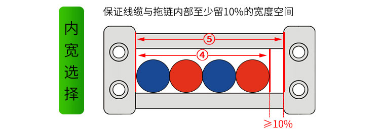 (拖鏈內寬④)≥(線纜并列后寬度⑤)*10%
