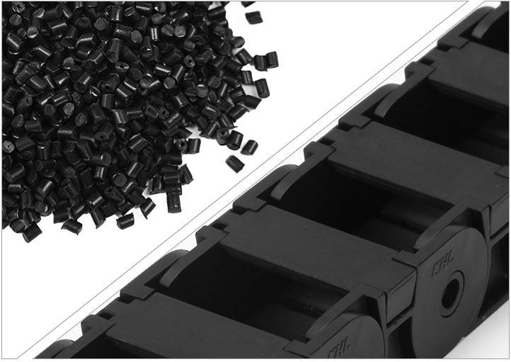 拖鏈每節都能打開,裝拆維修方便,不必穿線,打開蓋板后即可把電纜、油管、氣管、水管等放入拖鏈;